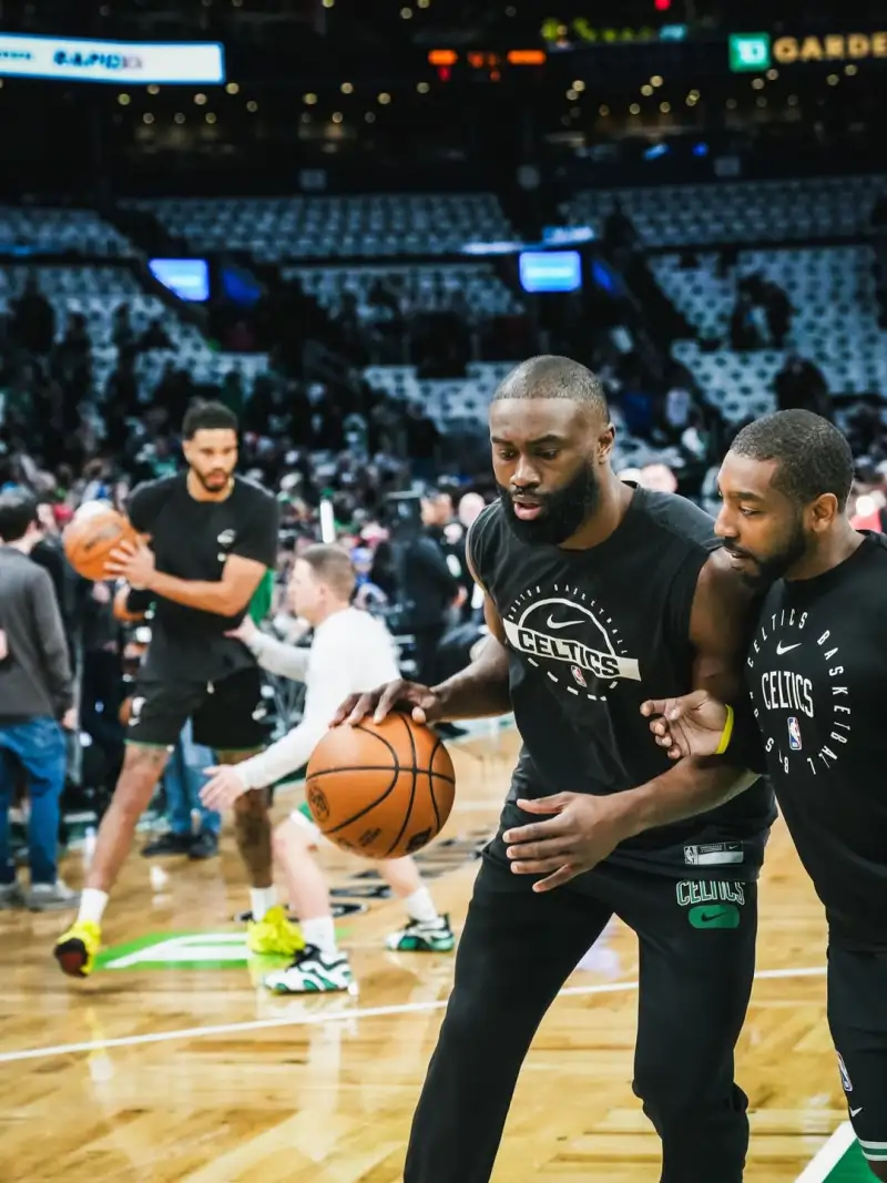 虎扑03月16日讯 凯尔特人官方更新Ins,晒出一组凯尔特人球员杰伦-布朗和杰森-塔图姆的赛场合影与球迷分享。